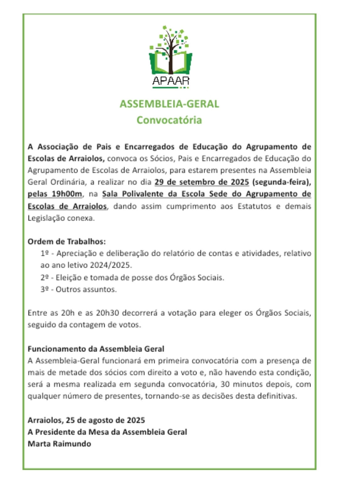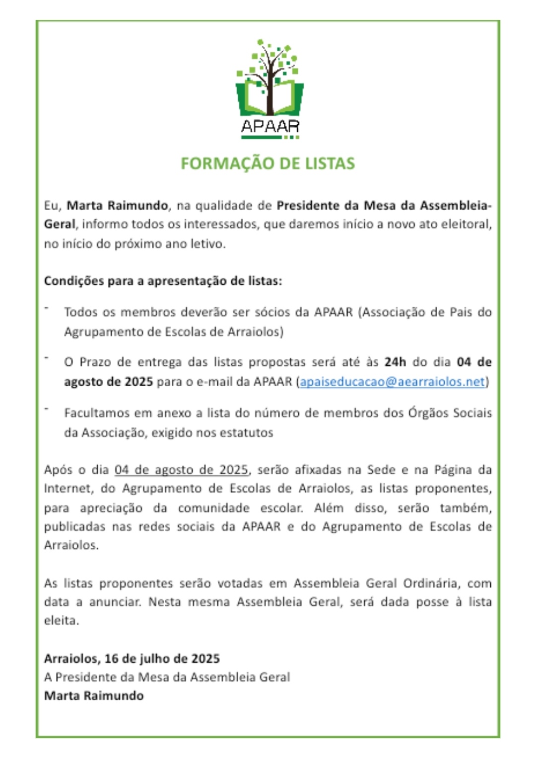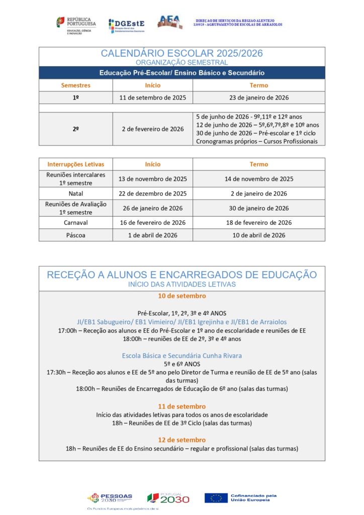 Avisam-se todos os interessados de que, de acordo com o Despacho n.º 8368/2024 do Sr. Ministro de Educação, Ciências e Inovação, todas as Escolas deste Agrupamento vão estar encerradas no período de 11 a 18 de agosto de 2025.