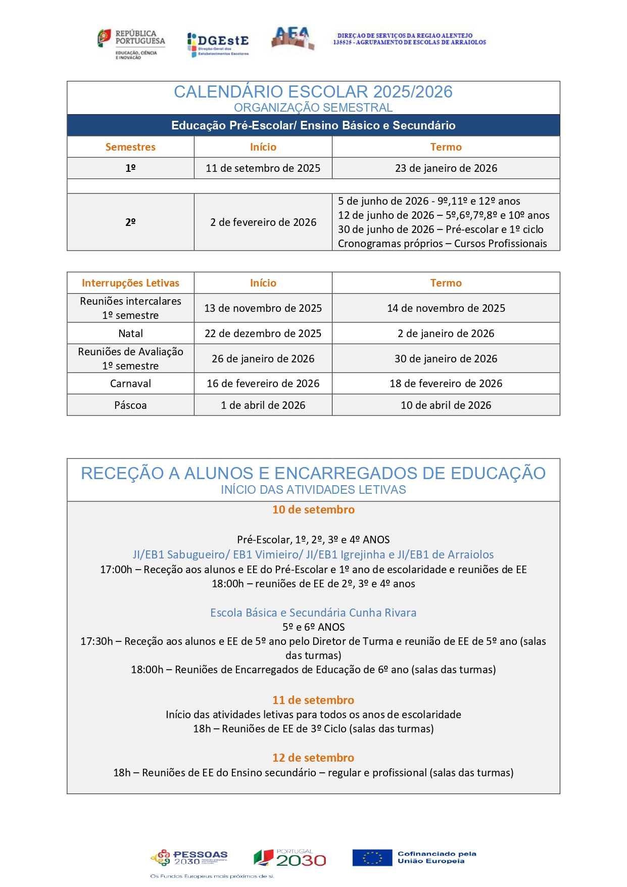 RECEÇÃO AOS ALUNOS E ENCARREGADOS DE EDUCAÇÃO E INÍCIO DAS ATIVIDADES LETIVAS 2025/2026